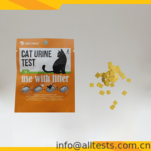 3. Después de que el gato orine, espere 5 minutos, observe el cambio de color del área húmeda de orina en la arena para gatos.