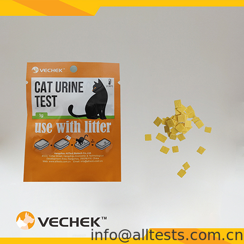 3. Después de que el gato orine, espere 5 minutos, observe el cambio de color del área húmeda de orina en la arena para gatos.
