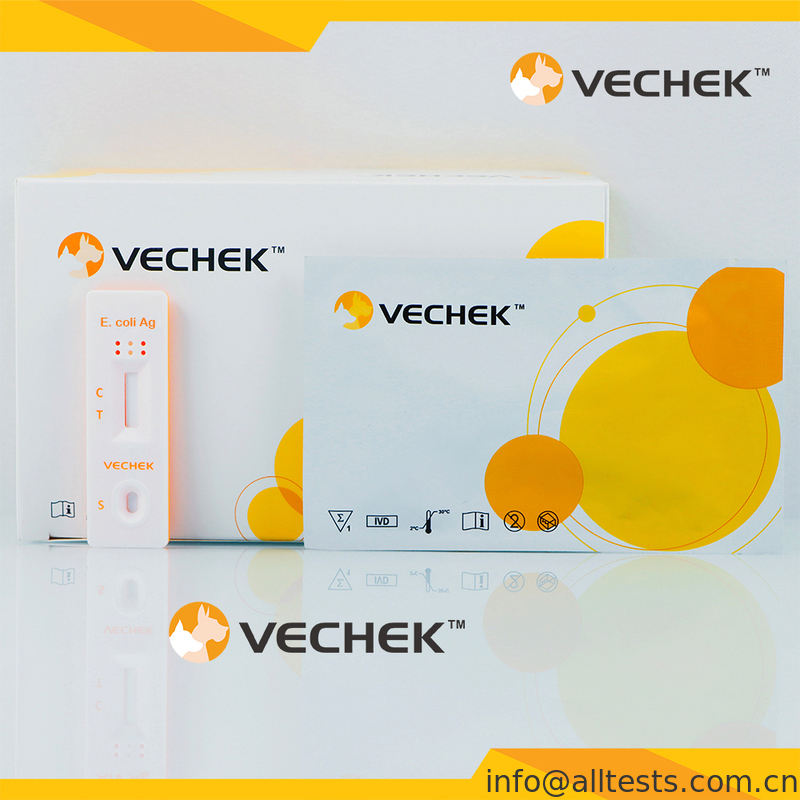 El casete de prueba rápida de antígeno E. Coli (heces) es un inmunoensayo cromatográfico rápido para la detección cualitativa del antígeno E. Coli O157 en heces de animales. Solo para uso veterinario.