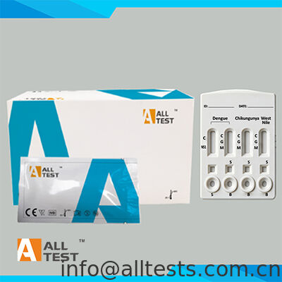 The Dengue/Chikungunya/West Nile Virus Combo Rapid Test (Whole Blood/Serum/Plasma) is a rapid chromatographic immunoassay for the qualitative detection of Dengue NS1 antigen, antibodies to Dengue virus, Chikungunya virus and West Nile Virus in human whole blood, serum or plasma.