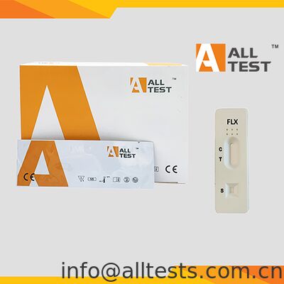 La prueba rápida FLX (sangre entera/suero/plasma) es un inmunoensayo cromatográfico de flujo lateral para la detección de (FLX) en sangre entera, suero o plasma humanos a una concentración de corte de 500 ng/mL.
